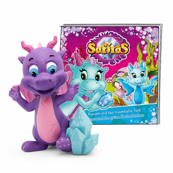 Dieser Tonie aus der Reihe Safiras, enthält die Geschichten „Nanami und das traumhafte Tuch“ und „Ninazu und das grüne Zauberbonbon“.
